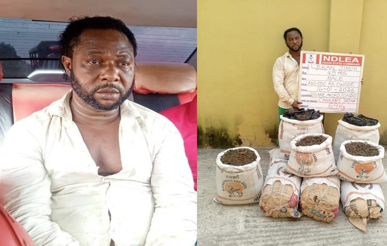Operatives of the National Drug Law Enforcement Agency have arrested Lekan Jimoh, a wanted drug kingpin popularly known as Kanmo-Kanmo, 12 years after the murder of three NDLEA officers. The agency’s spokesperson, Femi Babafemi, said Jimoh was apprehended on Friday at his hideout in Owode, Ogun State, following intelligence-led operations, with 69 kilogrammes of skunk and other cannabis strains recovered.
