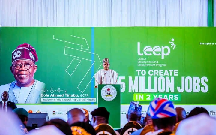 President Bola Tinubu has launched the Labour, Employment and Empowerment Programme—LEEP—with a target of creating 2.5 million jobs within two years.